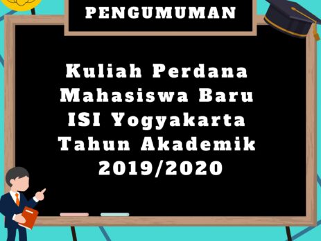 Diberitahukan kepada segenap mahasiswa baru (SNMPTN, SBMPTN, dan MANDIRI) ISI YOGYAKARTA Tahun Akademik 2019/2020, diwajibkan mengikuti Upacara Sidang Senat Terbuka dalam rangka Penerimaan Resmi Mahasiswa Baru Angkatan 2019, Kuliah Perdana pada: