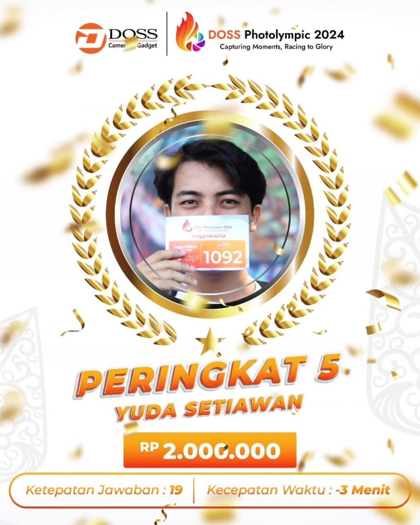 Pada tahun ini DOSS Photolympic diselenggarakan dibeberapa kota seperti Yogyakarta, Surabaya, Makassar, Bandung dan Jakarta. Juara satu sampai tiga berhak menjadi wakil dari Yogyakarta ke Grand Final DOSS Photolympic 2024 di Jakarta.