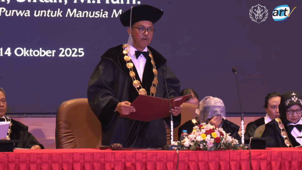 YOGYAKARTA — Institut Seni Indonesia (ISI) Yogyakarta kembali menambah jajaran guru besarnya melalui Sidang Senat Terbuka yang digelar di Concert Hall ISI Yogyakarta, Selasa (14/10/2025). Dua akademisi resmi dikukuhkan sebagai Guru Besar, yakni Prof. Dr. Prayanto Widyo Harsanto, M.Sn. di bidang Desain Komunikasi Visual dan Prof. Dr. Junaidi, S.Kar., M.Hum. di bidang Pedalangan. Keduanya menyampaikan orasi ilmiah yang mencerminkan kekuatan riset dan refleksi mendalam terhadap tantangan seni, desain, dan kebudayaan masa kini.