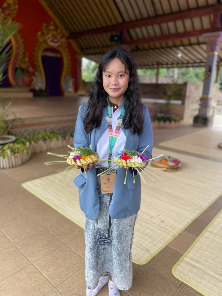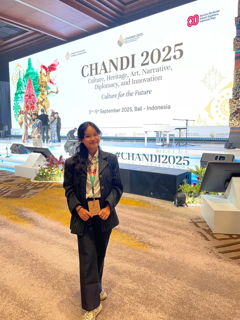 Fiora menuturkan bahwa pengalaman mengikuti CHANDI SUMMIT 2025 menjadi kesempatan berharga untuk memperluas pandangan tentang pentingnya menjaga kebudayaan di tengah arus globalisasi.