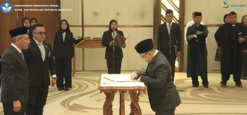 Jakarta – Kementerian yang membidangi pendidikan tinggi, sains, dan teknologi Republik Indonesia menyelenggarakan “Pelantikan Pemimpin Perguruan Tinggi Negeri, Pejabat Struktural, dan PPPK” yang disiarkan secara langsung melalui kanal YouTube resmi kementerian. Dalam Keptusan Menteri Pendidikan Tinggi, Sains, dan Teknologi Republik Indonesia nomor 331/M/KLAN/M/KPT.KP/2025 tanggal 8 Desember 2025 tentang Pengangkatan Pemimpin Perguruan Tinggi Negeri, Pejabat Pimpinan Pratama, Ketua Jurusan, Pejabat Pengawas, dan Pejabat Fungsional di Lingkungan Kementerian Pendidikan Tinggi, Sains, dan Teknologi menganggkat Dr. Bhimo Widyo Andoko, S.H., M.H.sebagai Kepala Biro Perencanaan, Keuangan, dan Umum (BPKU) Institut Seni Indonesia (ISI) Yogyakarta.