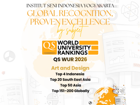 Yogyakarta, 26 Maret 2026. Institut Seni Indonesia (ISI) Yogyakarta kembali menorehkan capaian internasional dengan masuk dalam klaster 151–200 dunia pada QS World University Rankings (QS WUR) by Subject 2026 untuk bidang Art & Design. Hasil ini menegaskan keberlanjutan rekognisi global terhadap kualitas akademik, reputasi keilmuan, dan daya saing ISI Yogyakarta sebagai perguruan tinggi seni di Indonesia. QS WUR mencatat bahwa edisi 2026 untuk Art & Design memuat lebih dari 300 institusi dari berbagai negara, dengan Royal College of Art menempati posisi teratas dunia. Hasil QS WUR by Subject 2026 telah diumumkan pada 25 Maret 2026. Capaian ini menempatkan ISI Yogyakarta pada posisi 4 besar di Indonesia, 20 besar di Asia Tenggara, dan 50 besar di Asia untuk rumpun bidang tersebut. Pencapaian ini menegaskan keberlanjutan rekognisi global terhadap kualitas akademik, reputasi keilmuan, dan daya saing ISI Yogyakarta sebagai perguruan tinggi seni di Indonesia.