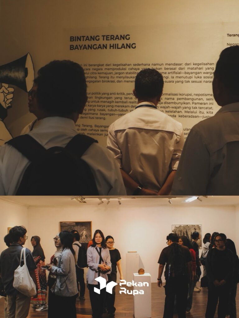 Mengusung tema Bintang Terang, Bayangan Hilang, Pekan Rupa #4 menawarkan pembacaan kritis terhadap realitas sosial di balik citra kemajuan yang kerap tampak gemilang di permukaan. Melalui karya-karya yang ditampilkan, publik diajak menelusuri “bayangan” yang tersembunyi di balik optimisme artifisial, sekaligus menyaksikan bagaimana seni mampu berbicara tentang luka sosial, kegelisahan, dan harapan dengan bahasa yang reflektif dan kuat.