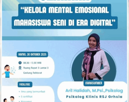 ISI Yogyakarta, 27 October 2025 - The Guidance and Counseling Unit (BK) of Institut Seni Indonesia (ISI) Yogyakarta held a seminar entitled "Managing the Emotional and Mental Well-being of Art Students in the Digital Era" to increase awareness and understanding of art students on the importance of mental health amid the development of the digital era.