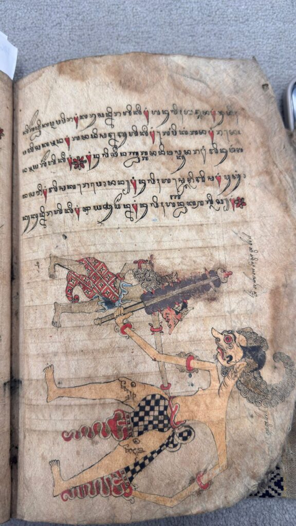 During her fellowship, Citra conducted intensive transliteration of around 250 pages of manuscripts. To date, she has successfully transliterated around 1,500 words of Old Javanese manuscripts. The research also identified two types of tembang macapat-Pangkur and Durma-which are encoded through visual markers in manuscript illuminations. Another significant finding is evidence of Islamic-Javanese syncretism in wayang narratives, including the representation of Semar as a “scholar” who is depicted performing the Duha prayer.