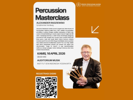 Yogyakarta, April 10, 2026 — The Music Performance Study Program at the Indonesian Institute of the Arts (ISI) Yogyakarta is once again providing an international-class learning space through the “Percussion Masterclass” event with Alexander Radziewski, a percussionist from Symphoniker Hamburg, Germany. This activity will be held on Thursday, April 16, 2026, at the ISI Yogyakarta Music Auditorium.