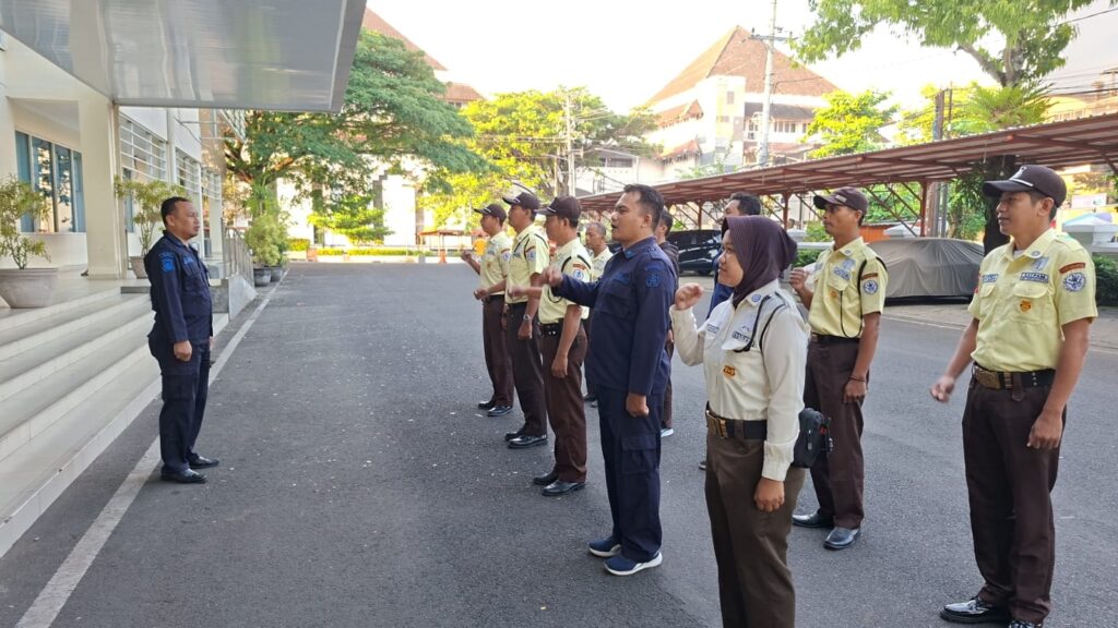 Yogyakarta — The Indonesian Institute of the Arts Yogyakarta continues to strengthen campus security and order through morning roll calls for its Security Unit (Satpam), led by Lina Setiawati, S.Kom., M.M., Head of the General Affairs Division of the Bureau of Planning, Finance, and General Affairs at ISI Yogyakarta, on campus grounds on Tuesday (04/14/2026). This activity is part of personnel development efforts and the strengthening of the Satpam's core duties and functions to support the creation of a safe, orderly, and conducive campus environment.