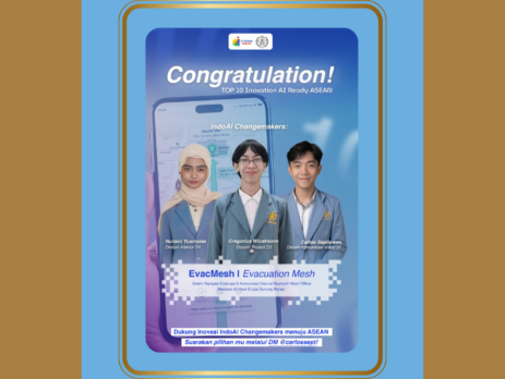 Currently, the team EvacMesh still has a chance to go further to achieve the best position. Public support can be given through a voting mechanism by sending a direct message to the Instagram account @carlossept. The EvacMesh innovation video can also be watched on the YouTube channel. https://youtu.be/kTjzGGh3s9w?si=gK3bXleCXxOJ74g3